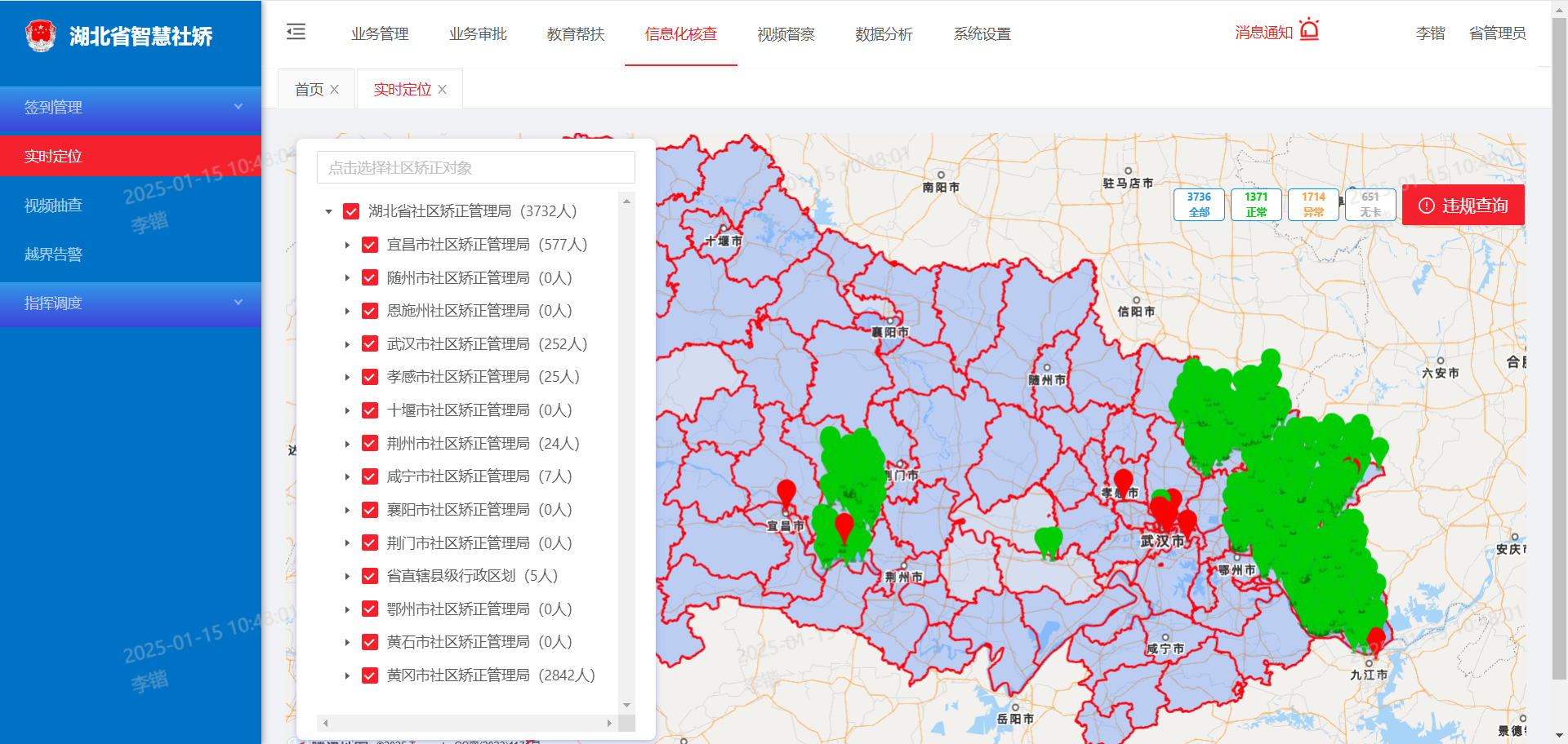 湖北省智慧社区矫正一体化平台建设范围覆盖整个湖北省,管辖范围内13个地级市、4个省管县级行政区划,实现全省区域化管理,所有工作人员通过平台开展日常工作。扩大社区矫正管理小组,及时、全面的掌握各社区矫正对象动态,为社区矫正工作提供更为高效、精准的服务。
